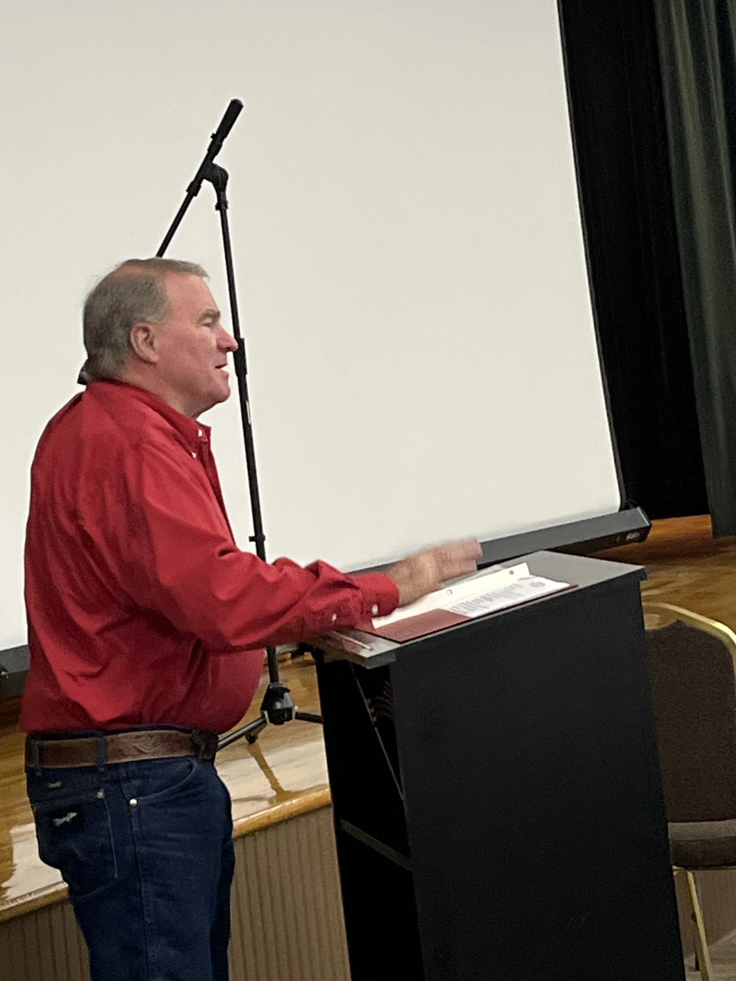 President Russell Tutor welcomes members and guests to the Burnet County Republican Club meeting.